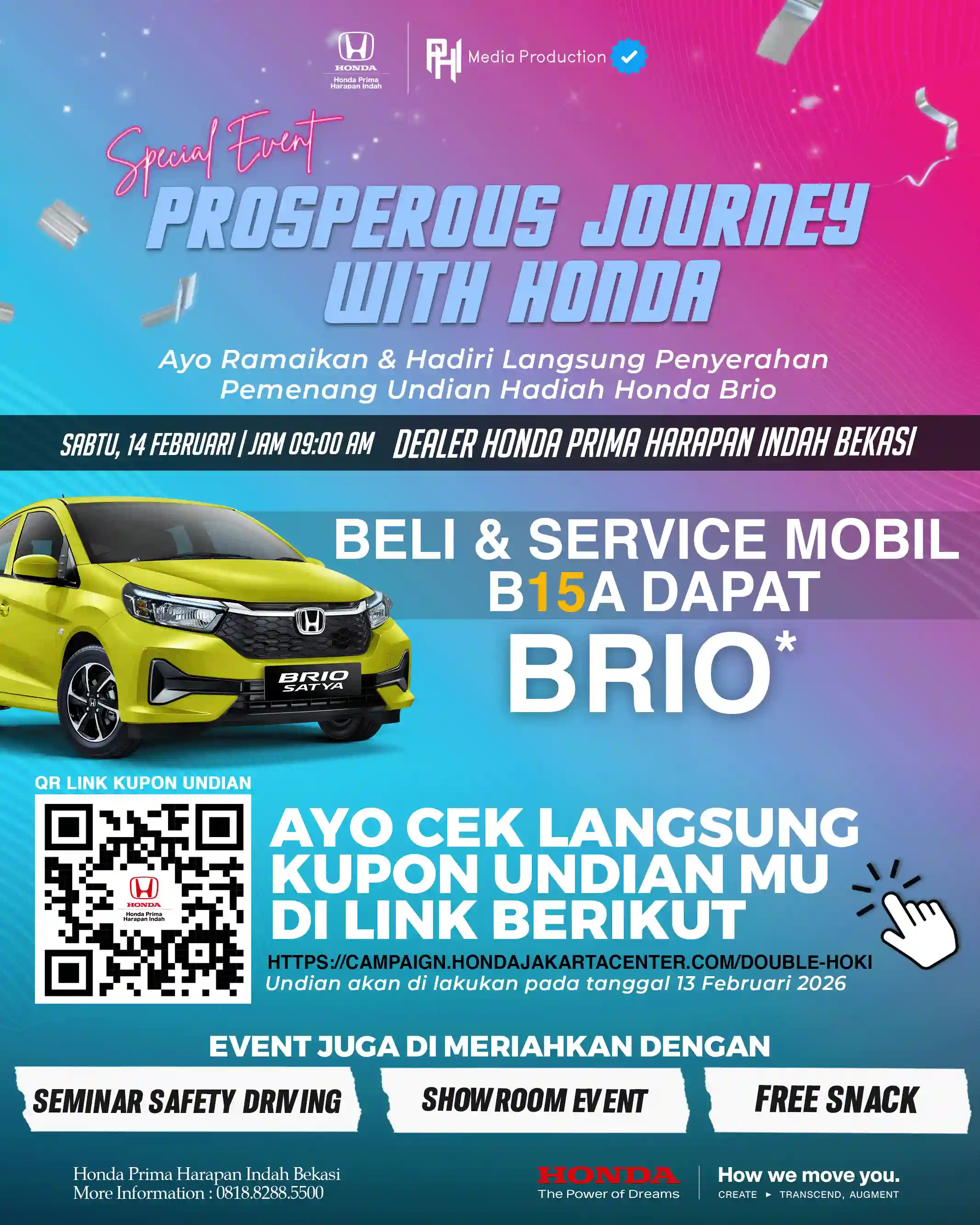 Sebagai Authorized Honda Dealer wilayah Bekasi kami melayani penjualan unit Honda dan penjelasan secara detail mengenai mobil yang anda beli akan dilayani oleh marketing kami.