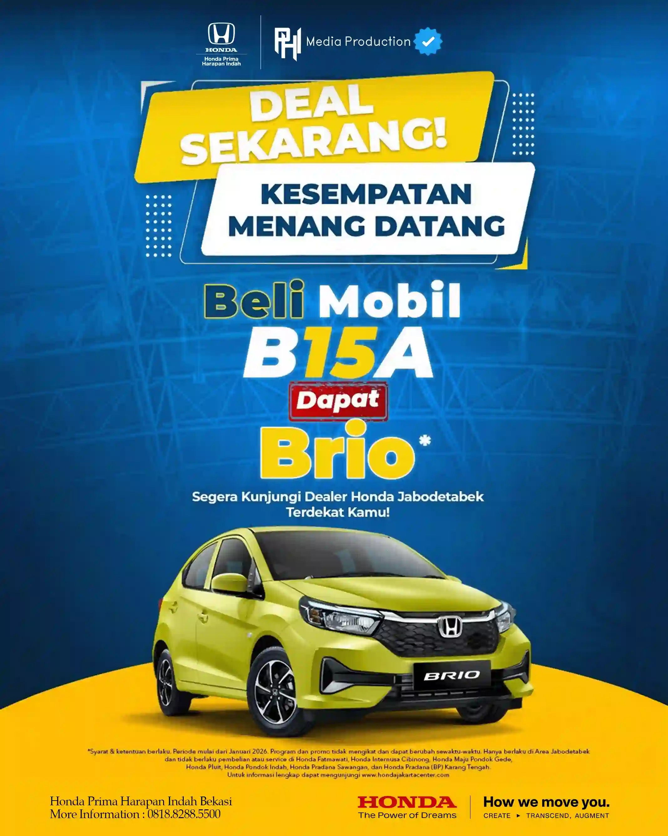 BELI 1 MOBIL, PULANG BAWA 2? CUMA DI JANUARI INI! Jangan cuma jadi penonton! Kesempatan buat menangin HONDA BRIO gratis tiap pembelian HONDA di Dealer Kami. Ini bukan sekadar promo, ini jalan pintas buat kamu punya dua mobil sekaligus di garasi! ... selengkapnya