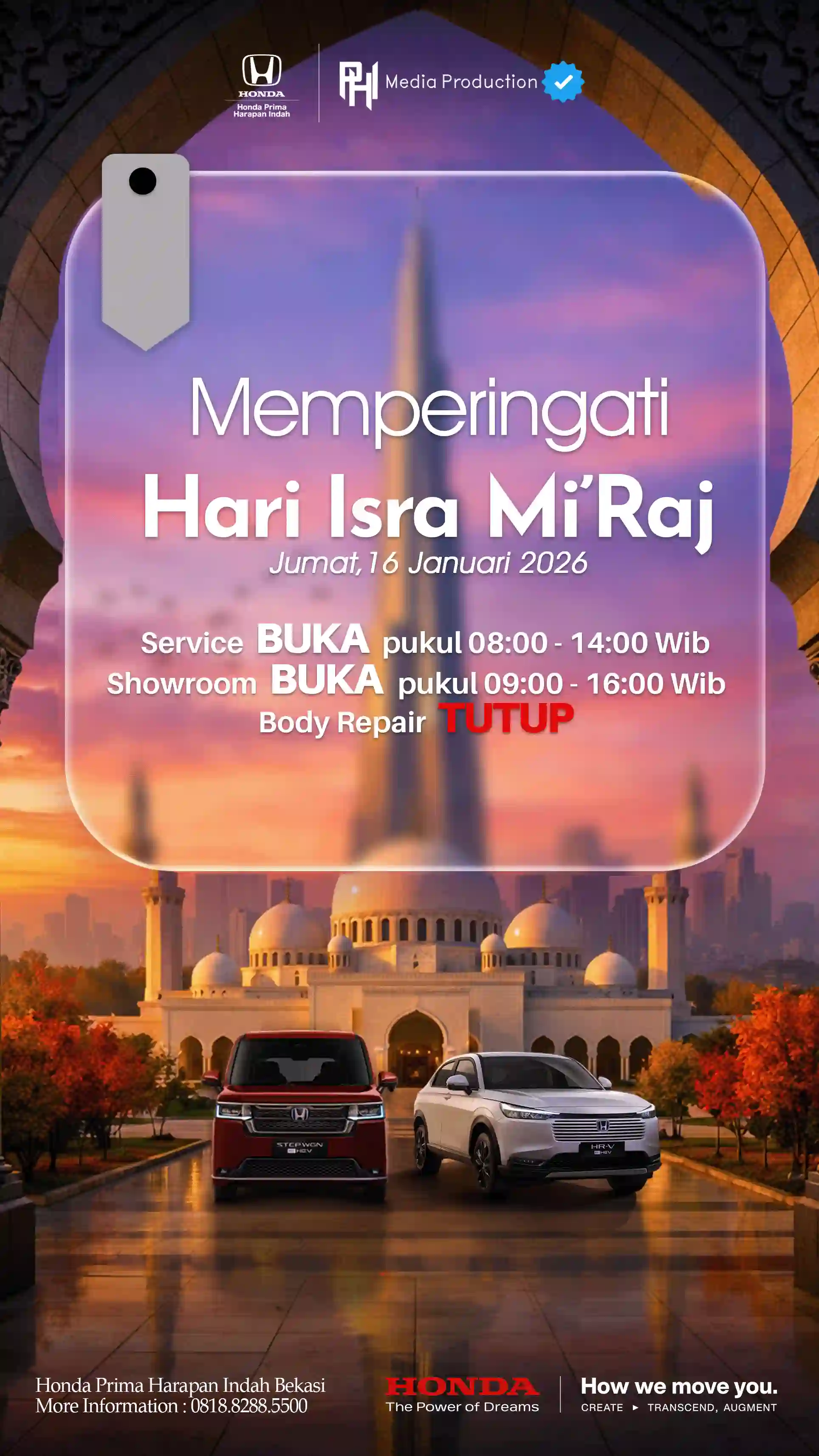 Selamat memperingati Isra Mi’raj 1447 H dari kami, keluarga besar Honda Prima Harapan Indah Bekasi.