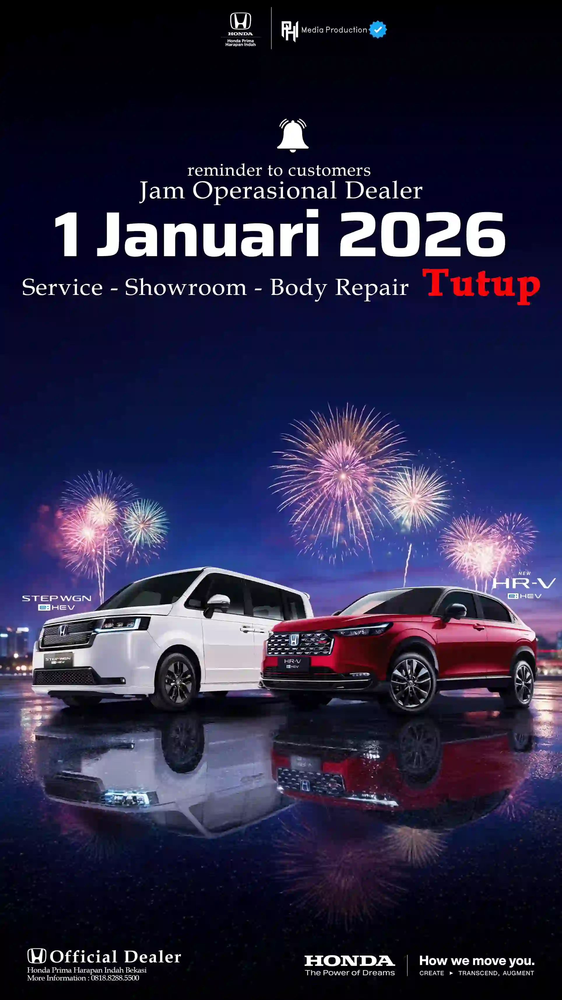 Sehubungan dengan libur Tahun Baru 1 Januari 2026, kami informasikan kepada seluruh pelanggan Honda: